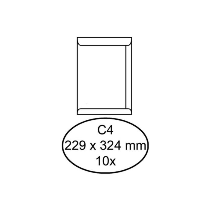 Pak met 10 witte akte enveloppen, met zelfklevende plakstrip, van het merk Quantore. Deze akte enveloppen hebben het formaat 229 x 324 mm (C4) en zijn daardoor zeer geschikt voor het versturen van ongevouwen A4 documenten. Papiergewicht: 120 g/m2.